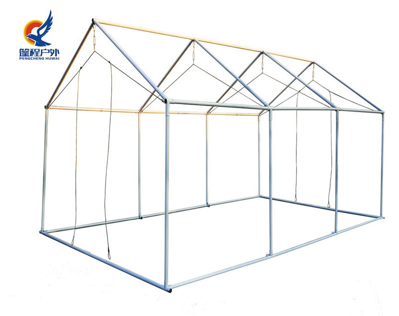 La fidindeco de la tendo unue devenas de la serĉado de plejboneco en dimensioj kaj materialoj. Pengcheng Outdoor uzas altkvalitajn altfrekvencajn veldatajn pipojn, kiuj spertas alt-precizecan fleksadpretigon per CNC-pipaj flekseblaj maŝinoj por certigi, ke ĉiu krampo precize kongruas kun la desegnita pinta alteco kaj altfrekvenca alteco - ĉi tiu estas la fizika antaŭkondiĉo por rapida tendo-muntado kaj ĝenerala struktura stabileco. Ĉiuj ŝtaltuboj spertas farbo-ŝprucigan traktadon por formi firman korodrezistan protektan tavolon. La tendoŝtofo estas kalkulita kaj tranĉita laŭ precizaj dimensioj: ni uzas altdensecan akvorezistan Oksfordan ŝtofon kun duflanka PVC-tegaĵo, integrante multoblajn funkciojn kiel akvoreziston, mildan reziston kaj UV-reziston, certigante produktan fortikecon kaj facilan bontenadon el la materiala perspektivo.
