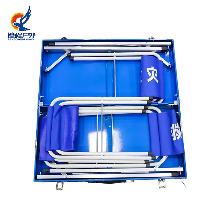 La dediĉita Krizhelpa Tablo kaj Seĝo de Pengcheng Outdoor konsistas el unu tablo kaj kvar taburetoj. Kaj la faldebla tablo kaj seĝoj kontraŭ katastrofo estas faldeblaj. Klasigitaj per tablotablaj materialoj, estas du tipoj: metalaj faldtabloj kaj plastaj faldtabloj. La tablosupro de la metala faldtabulo estas kunvenita el du simetriaj komponentoj stampitaj el malvarme rulitaj ŝtaltukoj, formante integran malfermeblan kaj fermeblan strukturon. La tablogamboj estas ligitaj al la tablosupro uzante aluminialojajn kvadratajn tubojn, kun ĉarniroj ebligante la gamboj faldi. La seĝosurfaco de la faldeblaj taburetoj estas farita el PVC-tegita ŝtofo, kaj la kruroj estas formitaj per fleksado de velditaj ŝtalaj tuboj. Kiam faldite, la kvar taburetoj povas esti stokitaj ene de la tablo, kiu tiam fermiĝas por formi integran manportilon.